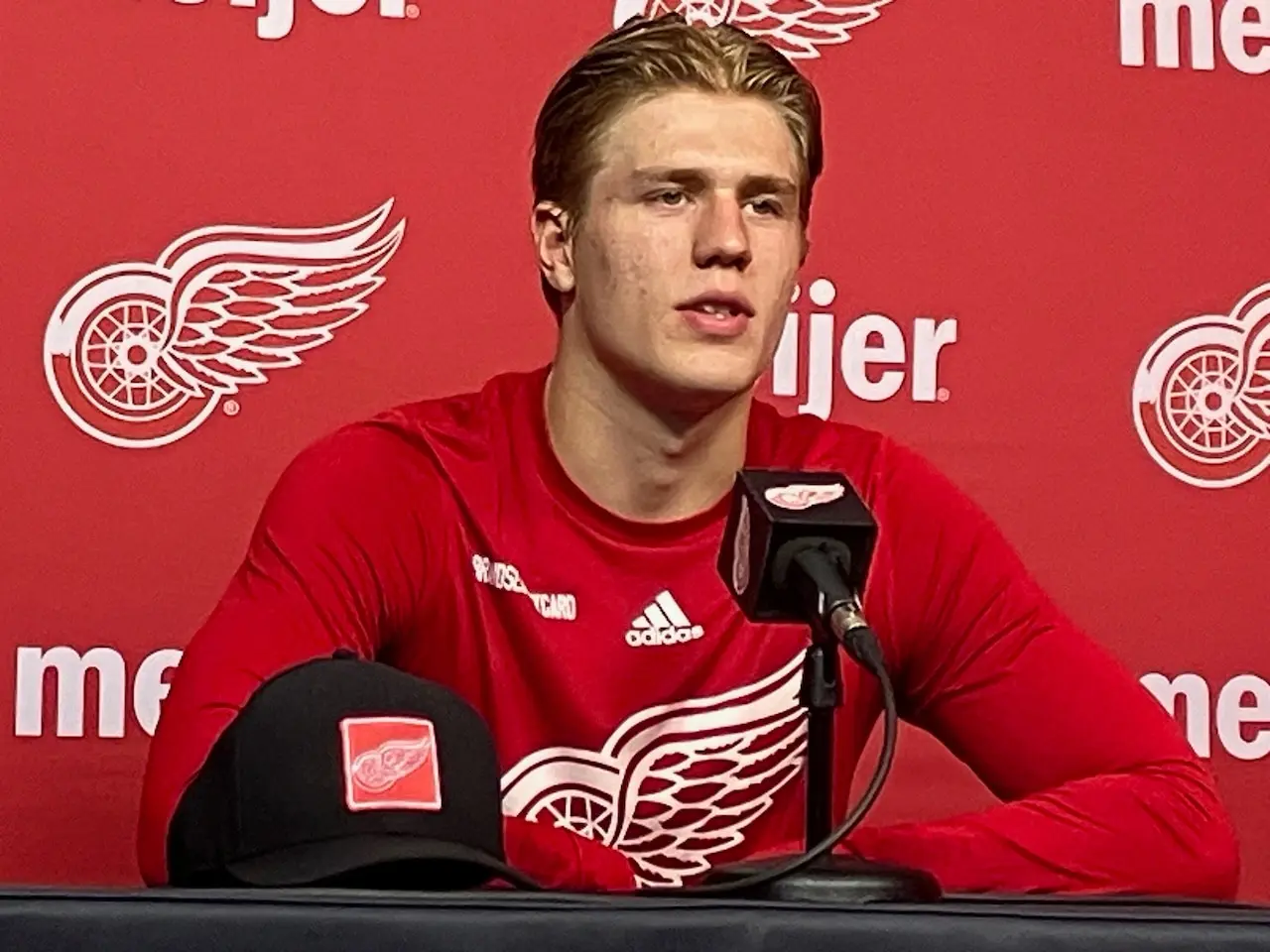 “It’s a big impact, we’ve talked about him a lot,” said Dylan Larkin on Monday. “I can’t say enough good things about him as a person and player. I think he’s also learning that people are going to be watching out for him, but that he has to continue to drive and push and prove it every night.”