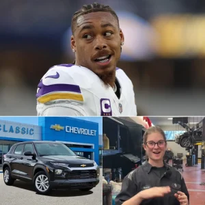 On a freezing Minnesota night, Maria Thompson, a janitor at U.S. Bank Stadium, helped Justin Jefferson fix a flat tire. The next morning, Jefferson showed up at her house with a white SUV, smiling: “You helped me when you didn’t have to… now let me help you.” Inside the car was a note: “From one Viking to another — you’ll never walk alone.”