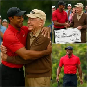 Tiger Woods Tracks Down the Gatekeeper Who Fed Him When He Was a Struggling Teen—And What He Did During His Break at Practice Made Thousands of Fans Cry… When Tiger Woods was 16 years old, a high school gatekeeper named Mr. Ellis would secretly leave sandwiches in his locker after late practices. Two decades later, Tiger Woods discovered that Mr. Ellis was now living in a small apartment, retired, and in debt. So, during his break at a practice session, Tiger Woods brought him onto the field—handing him a check for $500,000, a key to a retirement villa… and a hat with the word “Ellis” written on the front, along with Tiger Woods’ signature.