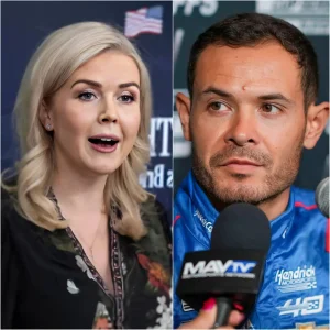 “Sit down, Barbie”: Kyle Larson surprised everyone by calling Karoline Leavitt a puppet of Trump during a live broadcast, after she publicly insulted him, claiming he was the most fraudulent driver in NASCAR history and should retire. But with just one post of 12 words, Pérez left Karoline Leavitt speechless, forcing her to apologize.