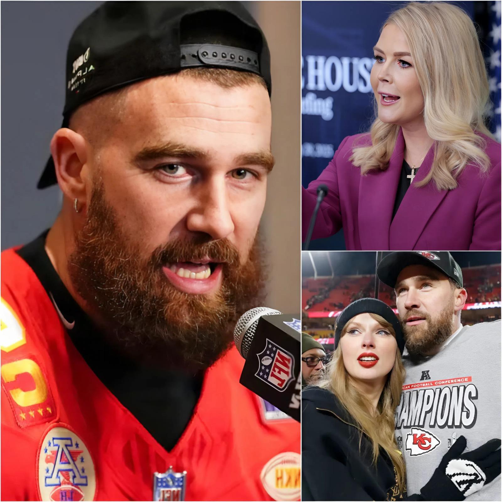 It was supposed to be a lighthearted segment — post-game laughter, charity highlights, maybe a joke or two. But when political commentator Karoline Leavitt went off-script and called Travis Kelce a “moral fraud,” everything changed in a split second on national television.