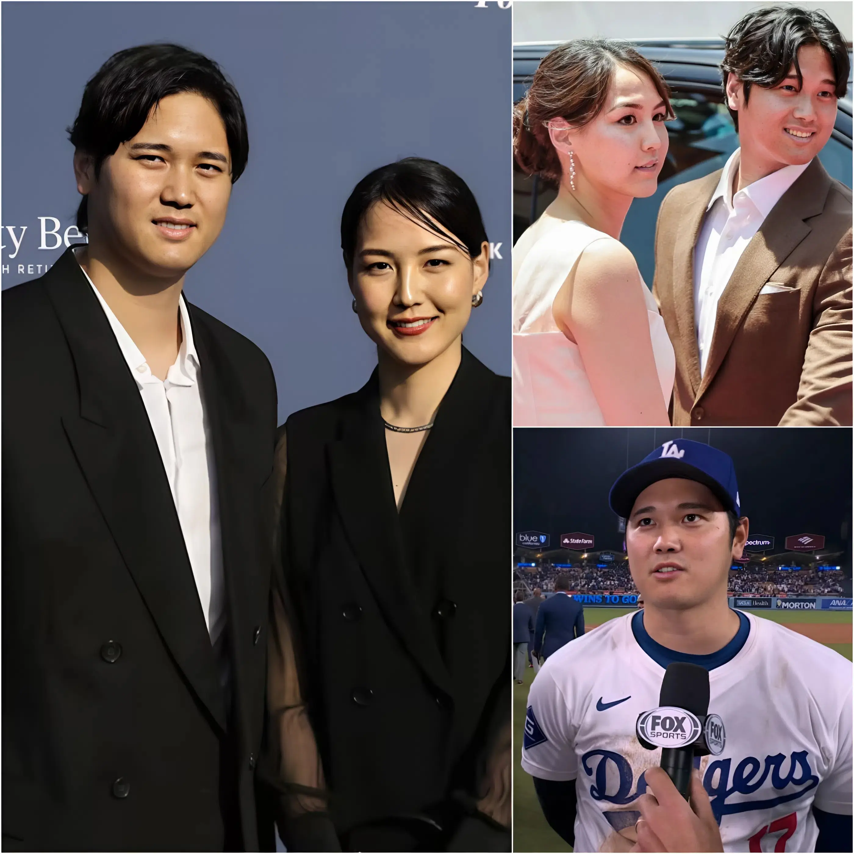 After a game filled with tension and a tough final score, Ohtani appeared before reporters with a gentle calm unlike the competitive fire seen earlier on the field. Standing beside him was his wife, Mamiko Tanaka, who joined him in offering news that immediately softened the atmosphere.