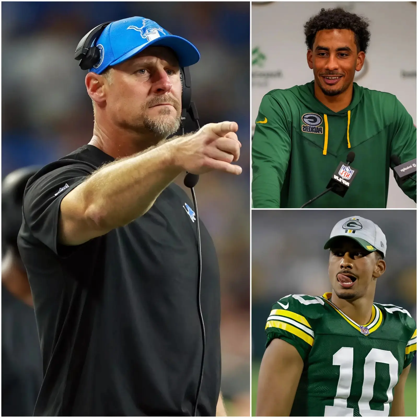 In the Packers’ camp, players exchanged stunned looks. Some shook their heads, others laughed nervously, unsure whether the Lions coach was serious or simply reacting out of raw frustration. Jordan Love, however, remained silent, seated calmly at the end of the bench with his helmet resting beside him.