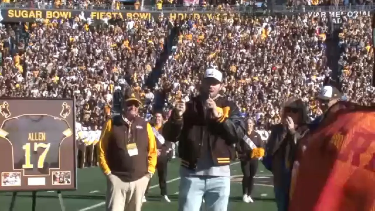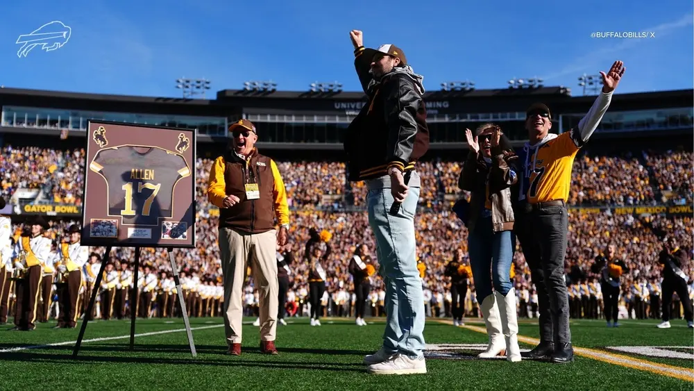 We honor the heart of Firebaugh – the grit, the faith, the impossible made real.” The crowd hushed as a highlight reel flickered to life: grainy footage of high school Allen juking defenders, spliced with Wyoming bombs and Bills playoff heroics. Then, the announcement: “Ladies and gentlemen, to retire No.