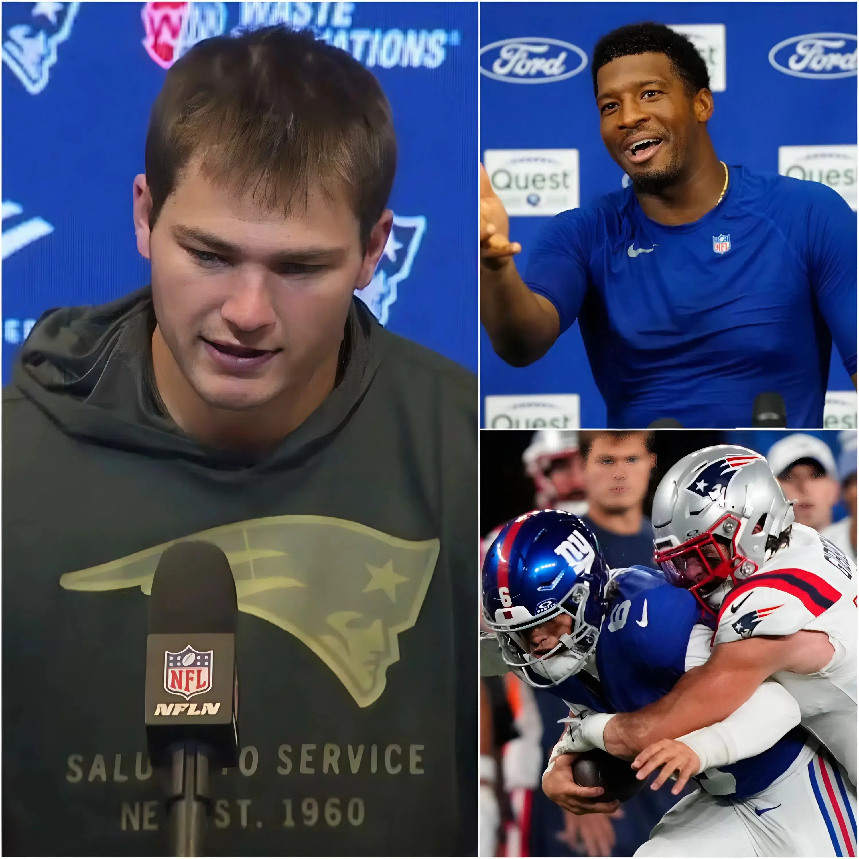 BREAKING NEWS: Ahead of the Giants vs. Patriots showdown that has fans on edge, Jameis Winston stunned the press during the pre-game conference with a shocking, mocking remark aimed at quarterback Drake Maye, calling him “gay.” When asked if he was worried about facing Maye, who’s been in incredible form this season, Winston smirked and replied, “Worried? I’m only afraid he’ll run out of the pocket and start crying, looking for his ex.” Drake Maye didn’t respond with a long statement, only a sharp 12-word retort paired with a photo, leaving Winston speechless and the NFL forced to step in with a surprising decision.