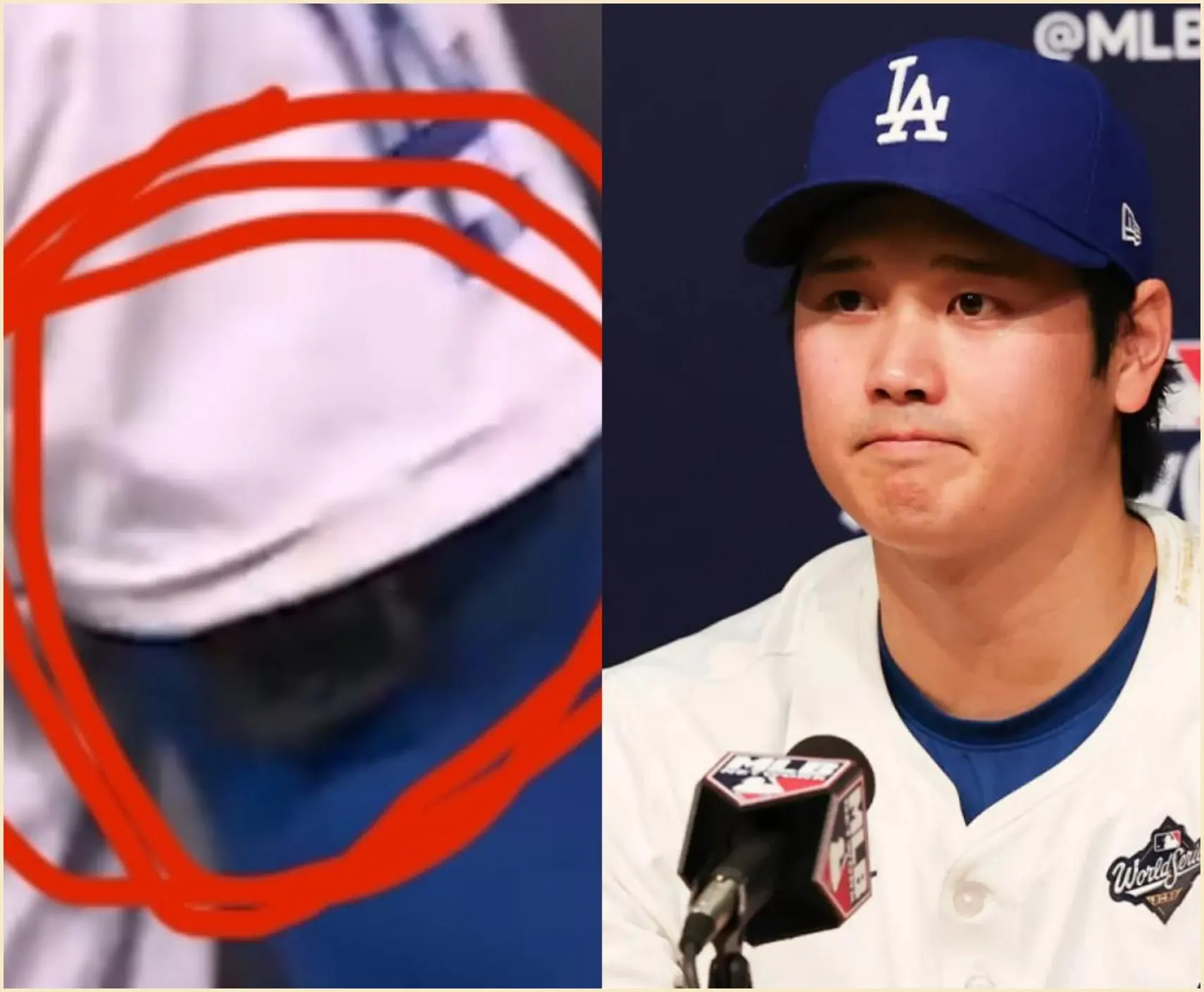 Delving deeper into the ‘something fishy’ claims, sleuths highlight Ohtani’s unusually quick glances toward the Dodgers’ bullpen during at-bats, suggesting visual cues from a scout or coach. One enhanced photo reveals what looks like a tiny earpiece wire tucked under his cap, invisible to the naked eye but glaring in 4K resolution. Experts from MIT’s sports analytics lab weighed in on a podcast, estimating a 75% probability of tech-assisted cheating based on biomechanical anomalies in his swing path. These revelations have fans reevaluating Game 4’s key moments, like Ohtani’s RBI double in the third that turned